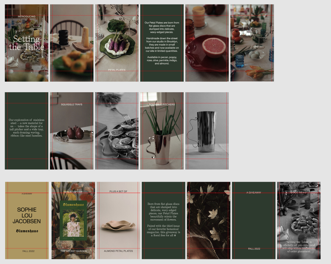 Past grid sequences featuring Assembly Line, Brite Bodies, Ace Hotel New Orleans, Sophie Lou Jacobsen, LOVEISENOUGH, and Chloe Berlin Studio.
